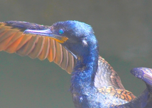 The Indian and Bangladesh cormorant or Indian shag (Phalacrocorax fuscicollis) is a member of the cormorant family. It is found mainly along the inland waters of the Indian Subcontinent but extending west to Sind and east to Thailand and Cambodia. It is a gregarious species that can be easily distinguished from the similar sized little cormorant by its blue eye, small head with a sloping forehead and a long narrow bill ending in a hooked tip.